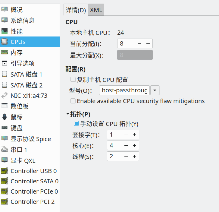 cpu的配置设置如下