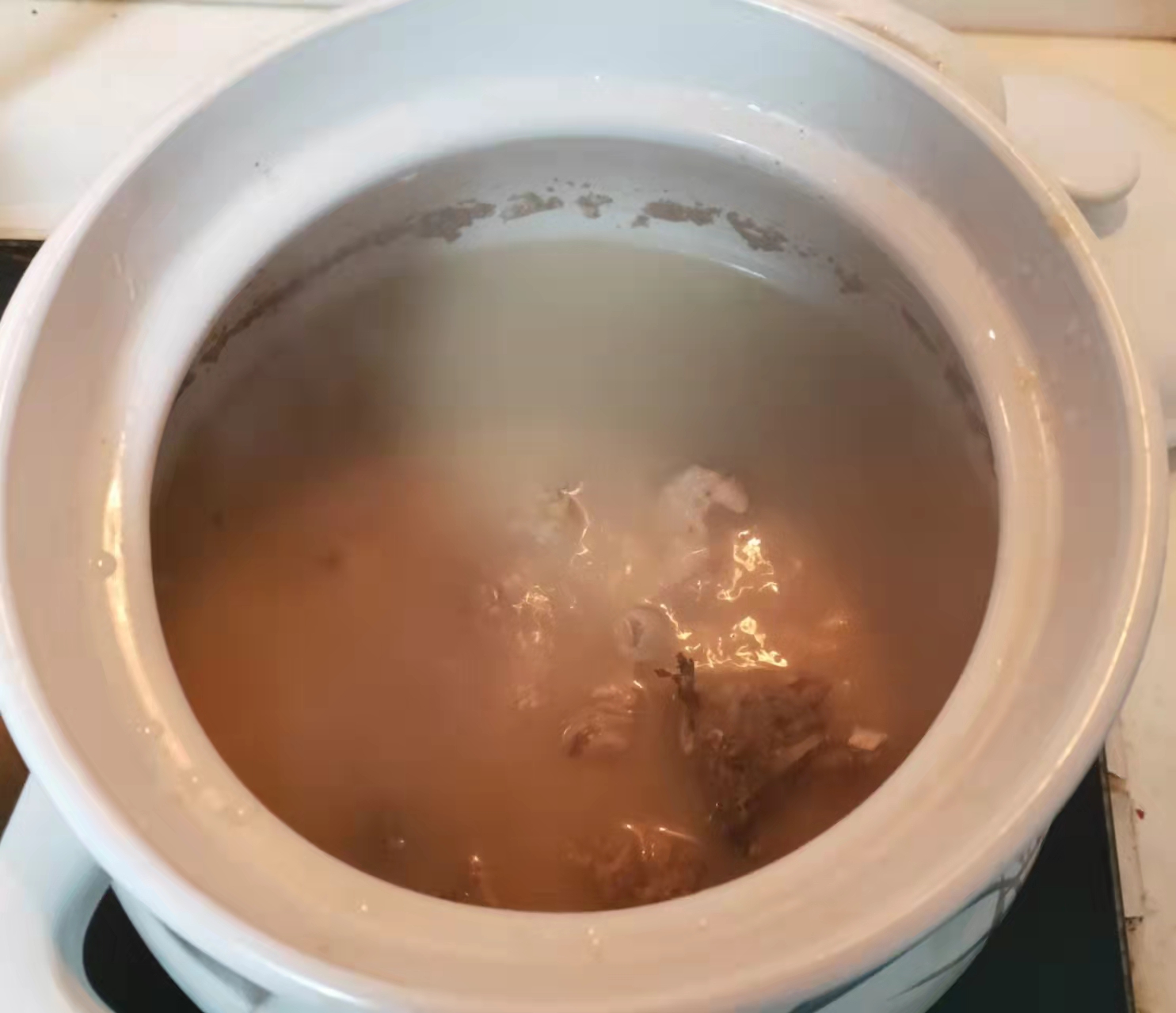 • 热水加鱼骨,中火煮透,取出滤掉水分