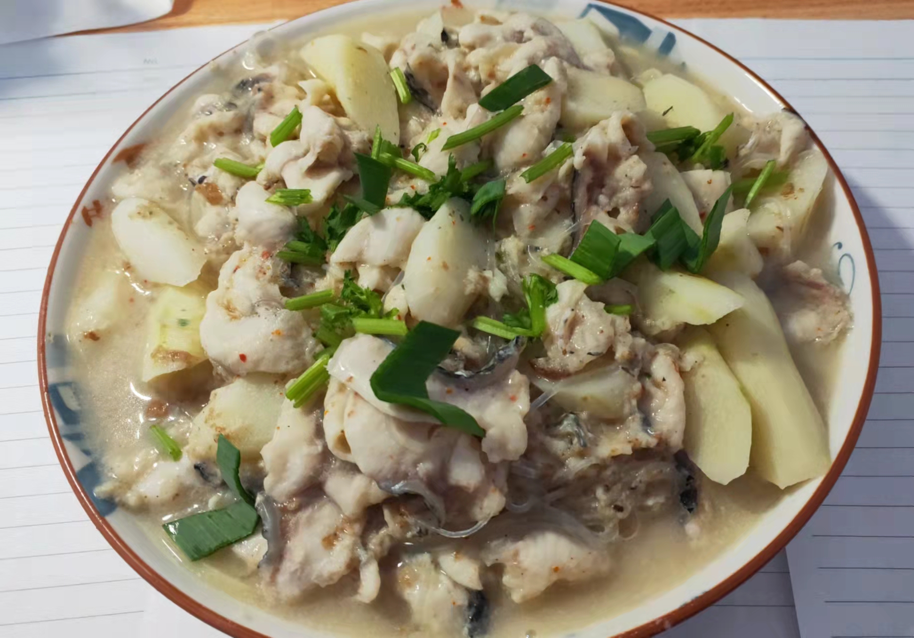味道淳朴厚实,鱼肉滑滑嫩嫩;鱼刺没有处理干净,有不少残留。