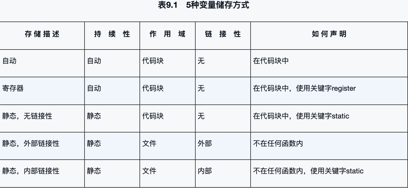- 可访问范围(内外部链接、无链接):仅针对静态持续变量而言,通过