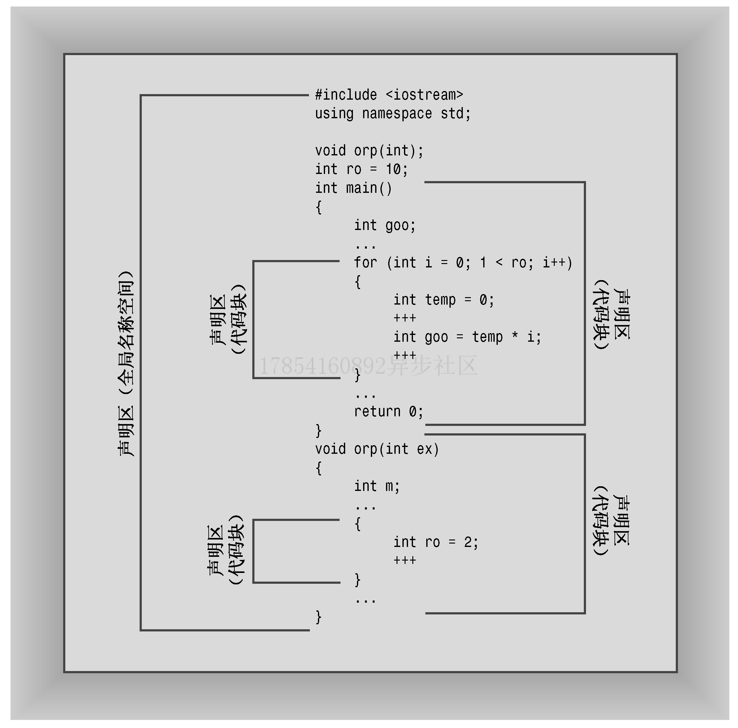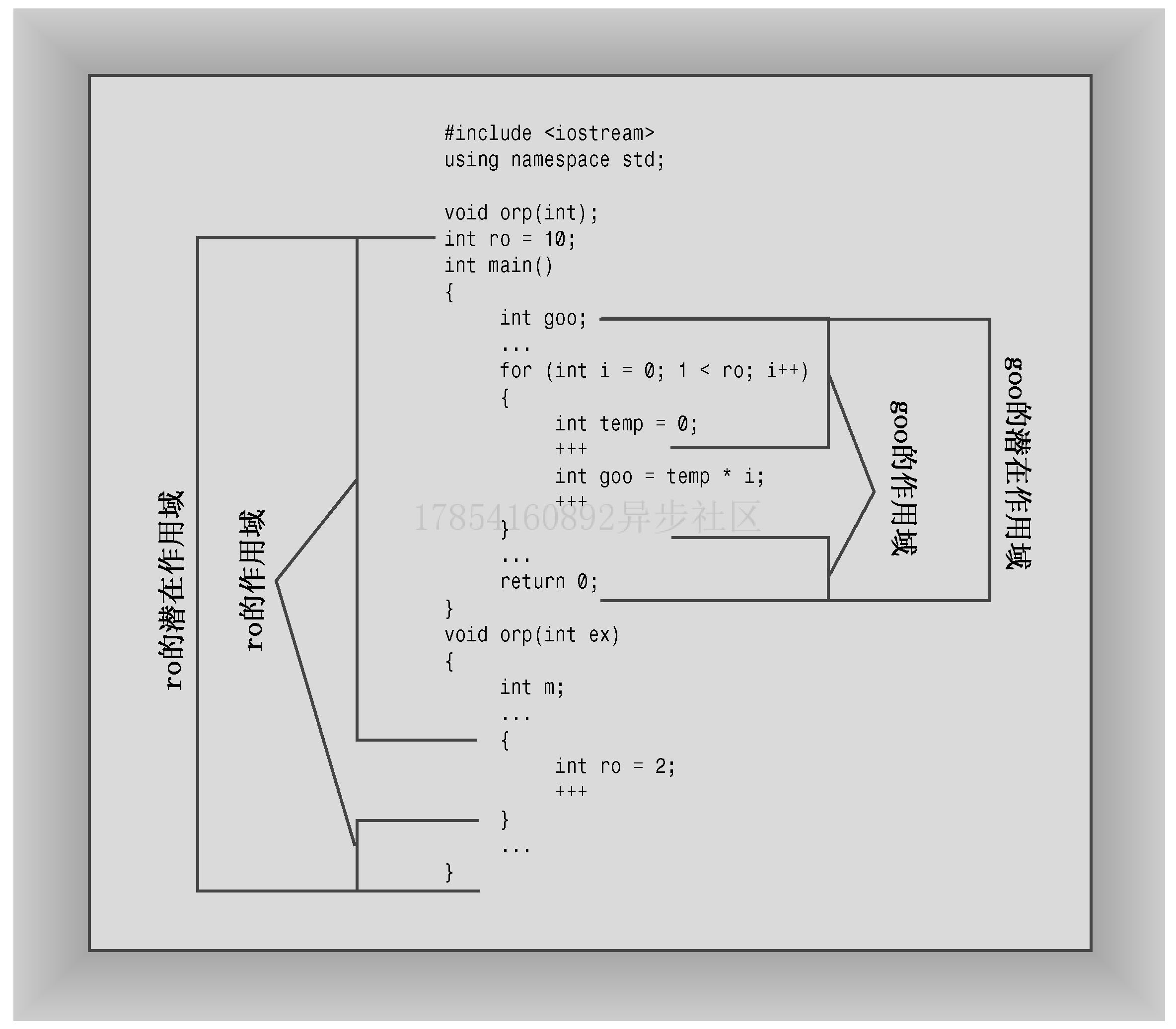 - 潜在作用域:从声明点开始到其声明区域的结尾