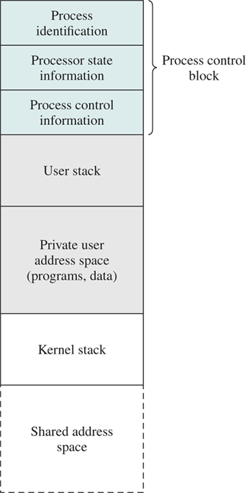 | 栈指针 | 一个进程有一个或者多个相关联的系统栈,用于保存参数、过程调用或系统调用 |