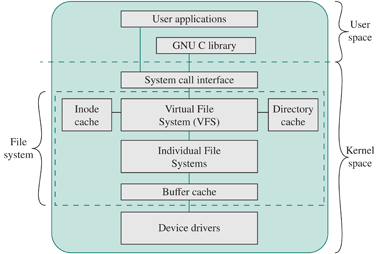 Linux提供了统一的简单的文件系统接口,通过系统调用操作某个文件的请求,会被映射到该文件所属实际文件系统的具体操作上。这称之为虚拟文件系统(Virtual File System)。结构如下图所示