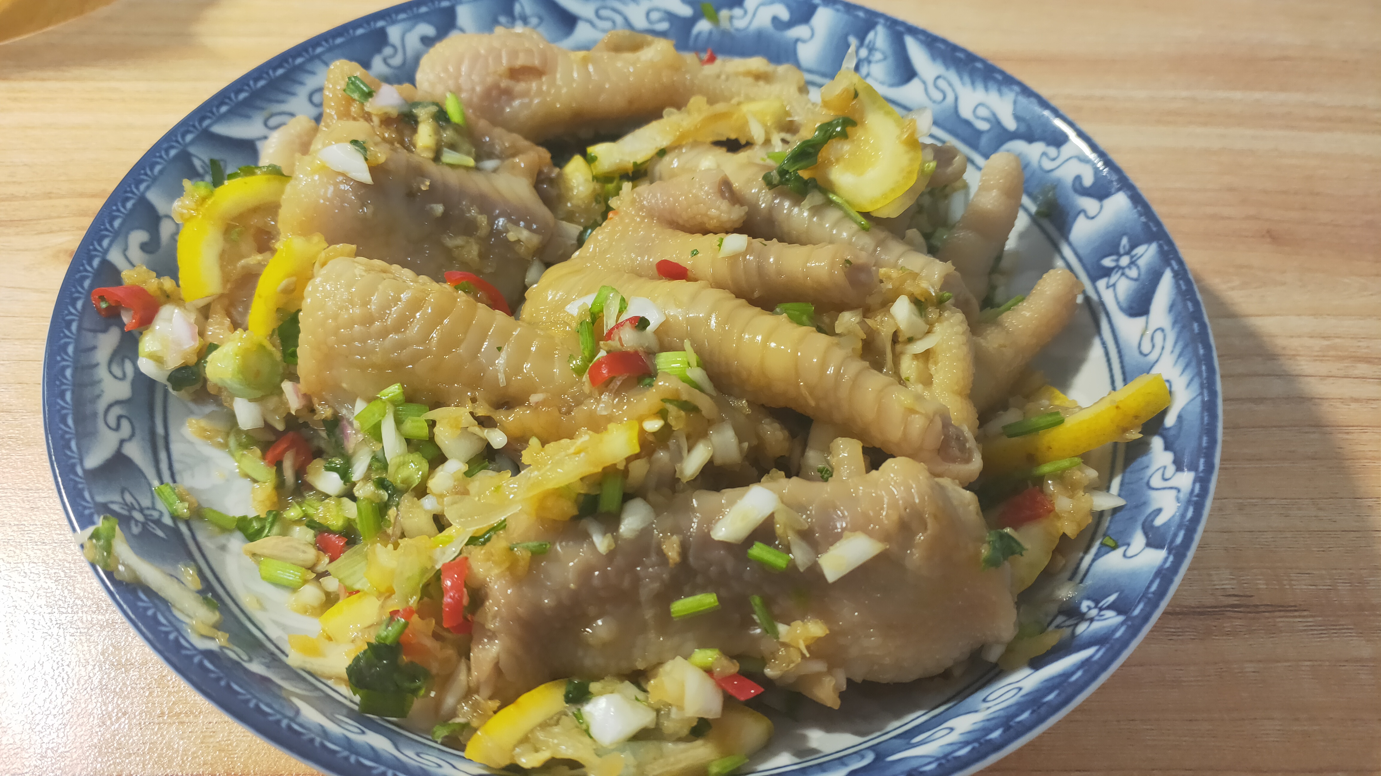 - 葱,姜,花椒(灵魂之一),冷水煮鸡爪,20分钟(煮熟,之后不会再加热了)