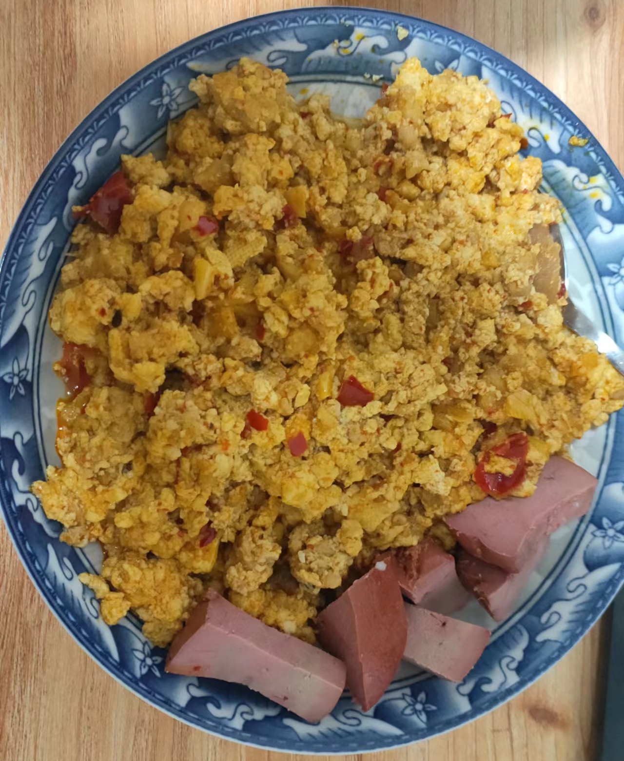 【菜谱】烧豆腐 Posted on 2022-04-09 Edited on 2022-08-10 In 生活 Views: 本人男,好吃豆腐 食材 猪肉 老豆腐 制作步骤 准备 肉剁成泥 豆腐抓碎 炒制 锅热下油,加少许盐(防止粘锅),再下猪肉煸炒 再加蒜末,辣椒粉,豆瓣酱 加水,盐,酱油 加豆腐 小火烧 勾芡 出锅 加碎葱 成品 2022-04-10 稀碎,盐加多了,十分的咸。油也没有放太多,水烧干了