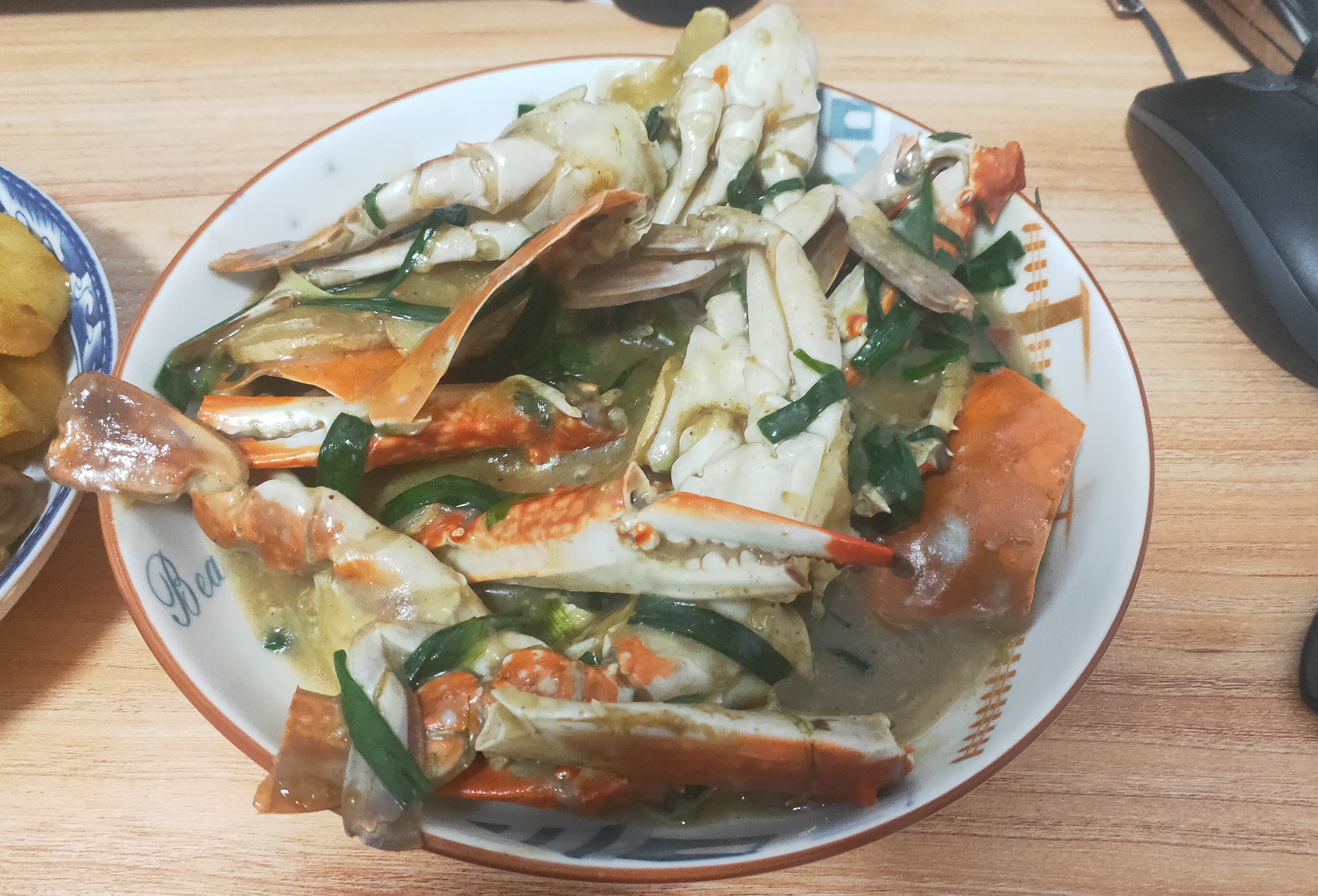 - 加入多点的油,油煎一下螃蟹,封住螃蟹肉