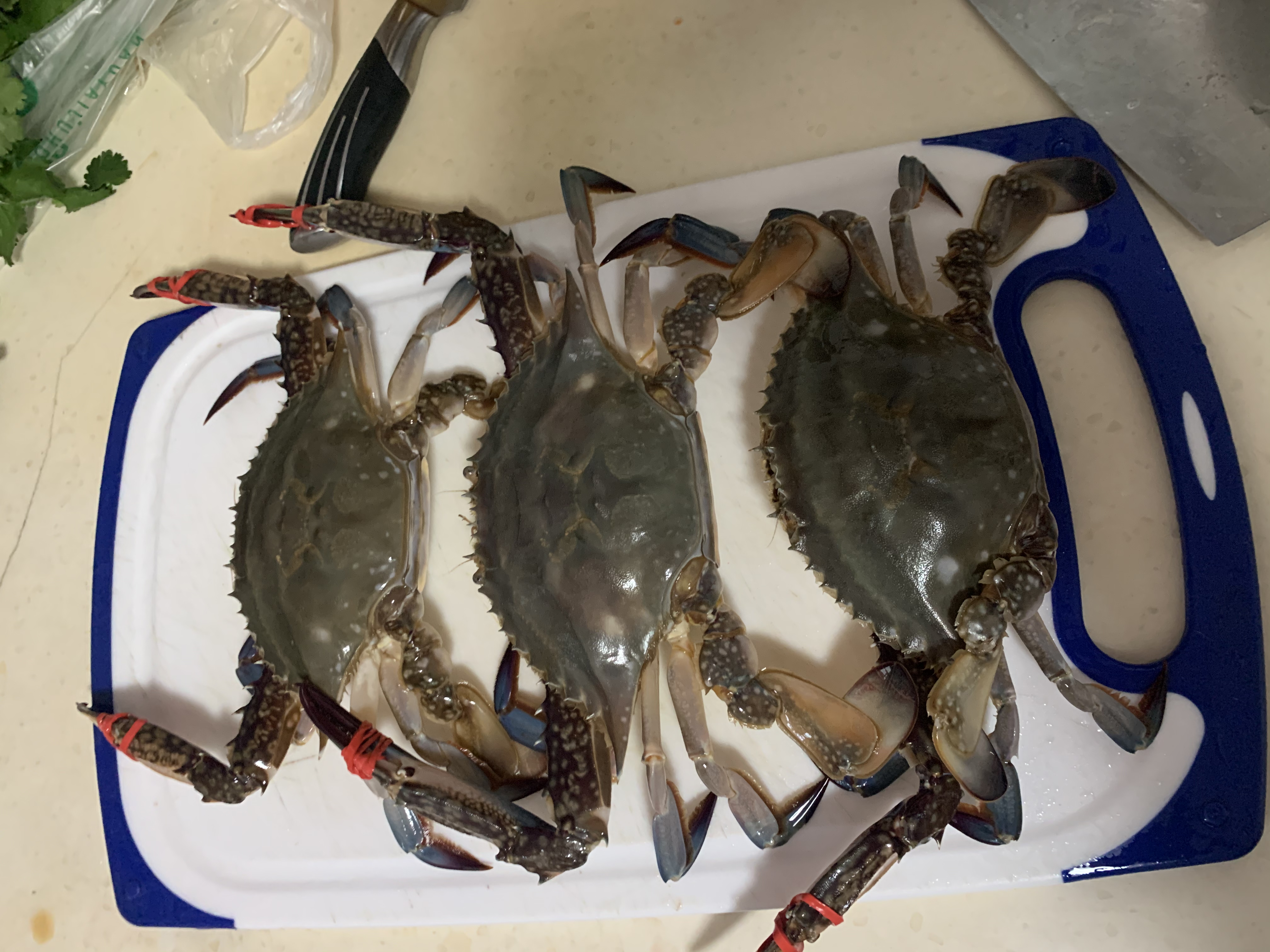 - 去除脚的最后一个关节,避免螃蟹挣扎的时候划伤自己。