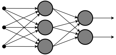 In this network, the information moves in only one direction, forward, from the input nodes, through the hidden nodes (if any) and to the output nodes. There are no cycles or loops in the network. — Wikipedia