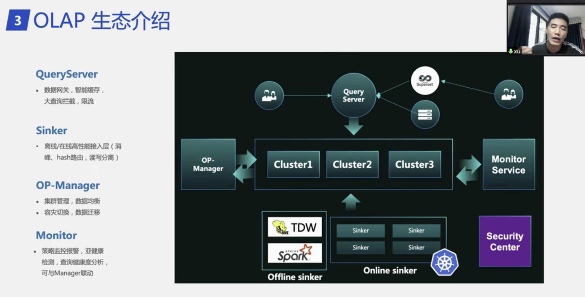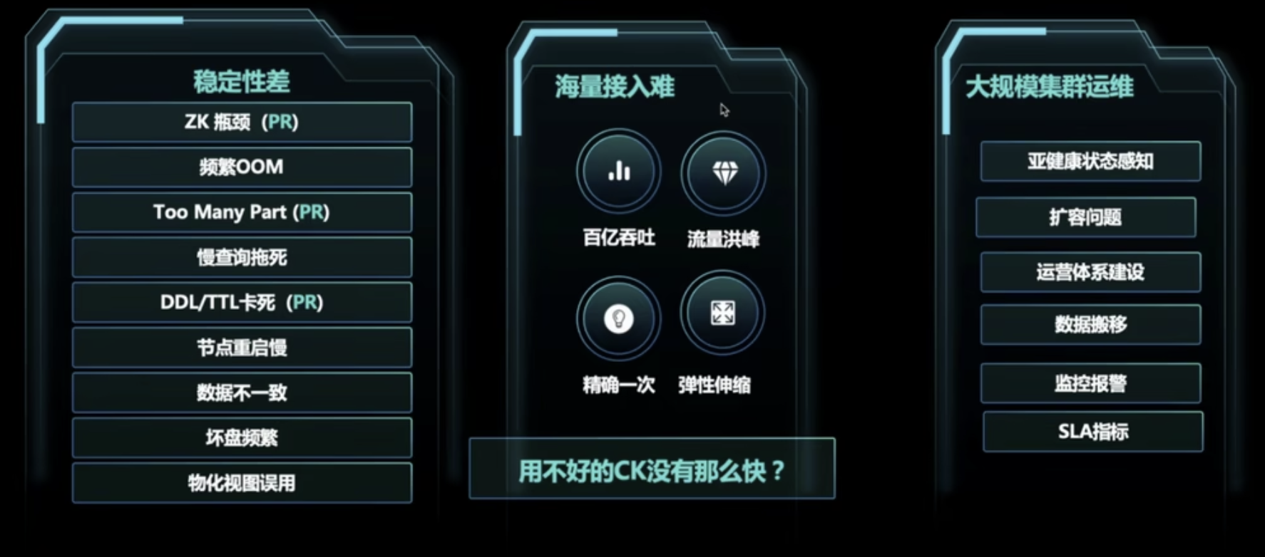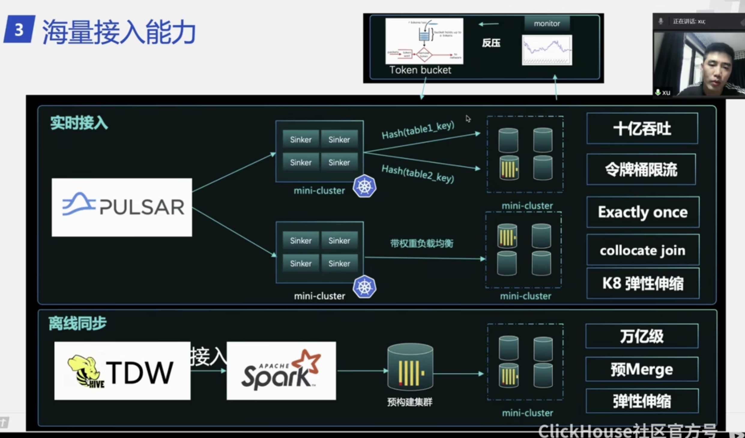 ClickHouse Intro Posted on 2023-01-24 Edited on 2023-01-26 In 技术 Views: Some breif introduction of ClickHouse. Architecture Query Server The cache hit ratio in Wechat can be 80%. Sinker The ClickHouse is not good at writing frequently. Monitor There are thousands of monitoring indicators. Challenges Refer