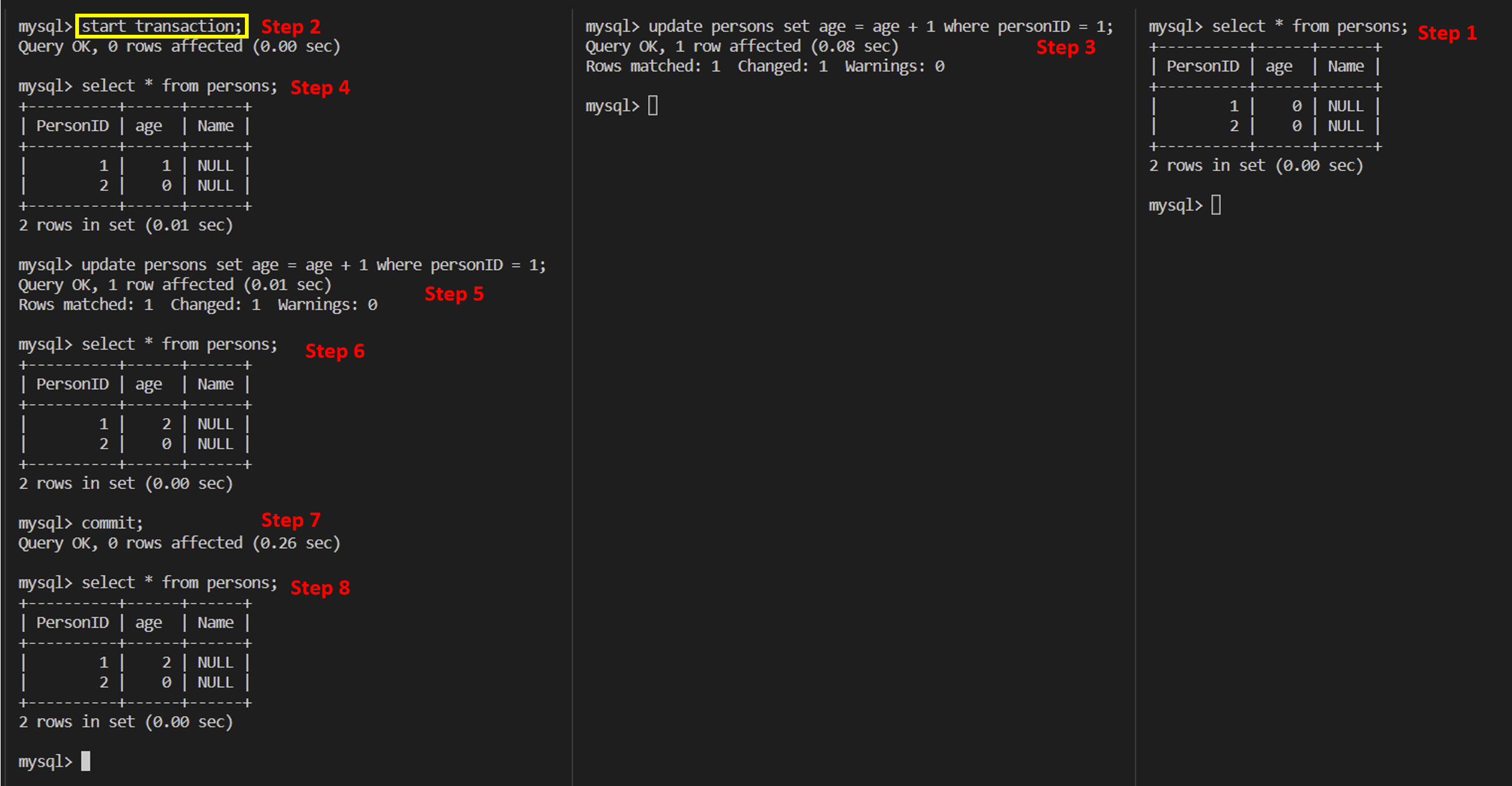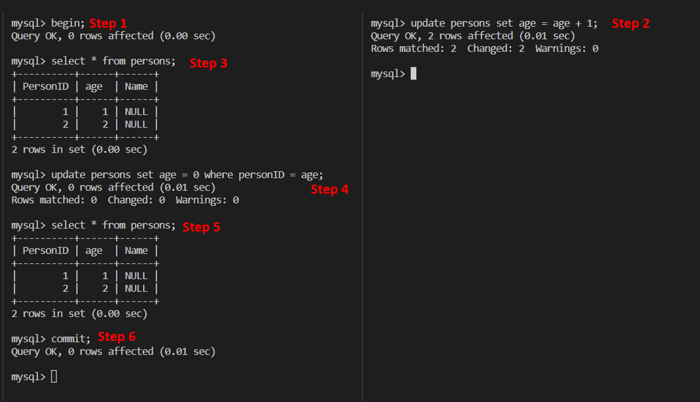 Note: The step 3 can see the changes made by step 2. Refer to ex 1 and ex 5.