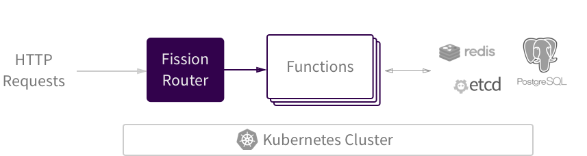 - Fission 通过HTTP请求的方式,触发函数调用。函数内可以继续向后访问有状态服务。