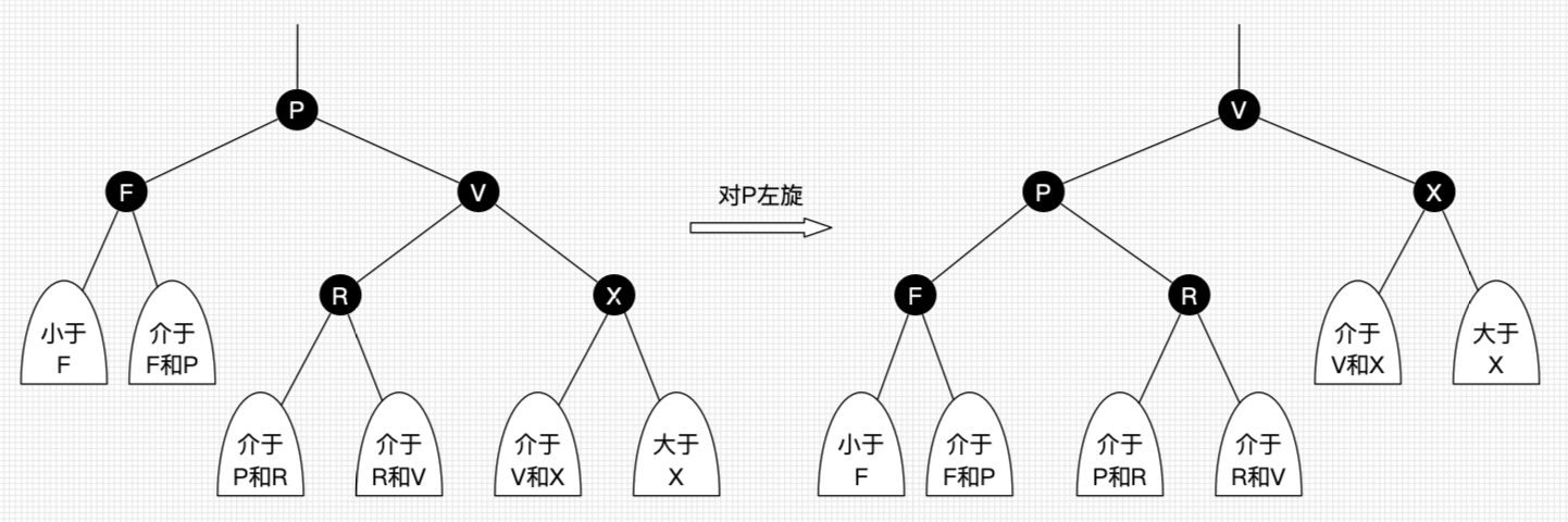 • 叔叔节点不存在或为黑色且P节点是PP节点的孩子